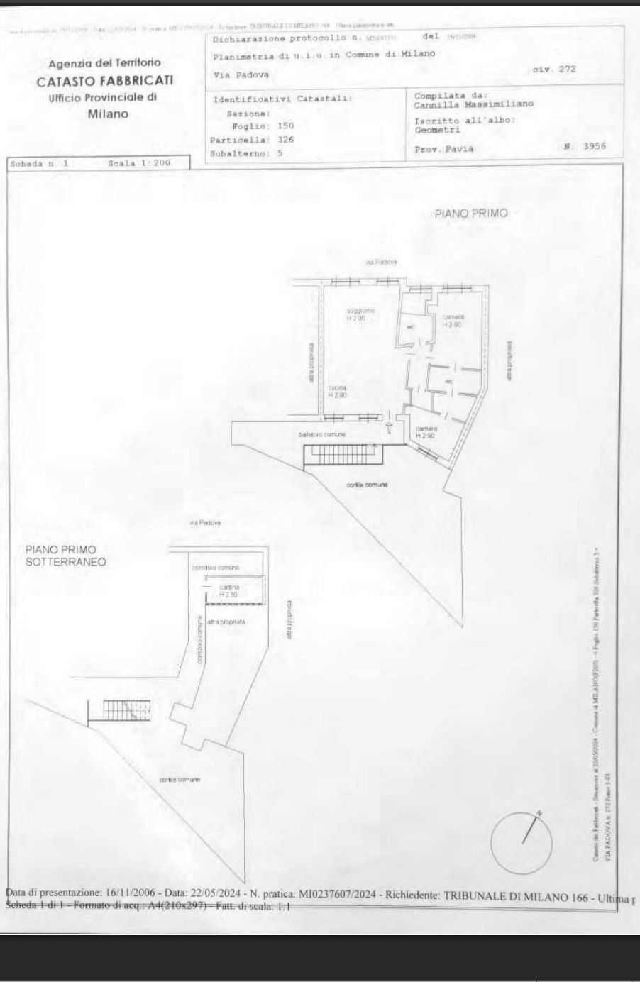 unità immobiliare al piano primo composta da tre locali e doppi servizi, oltre cantina al piano interrato.