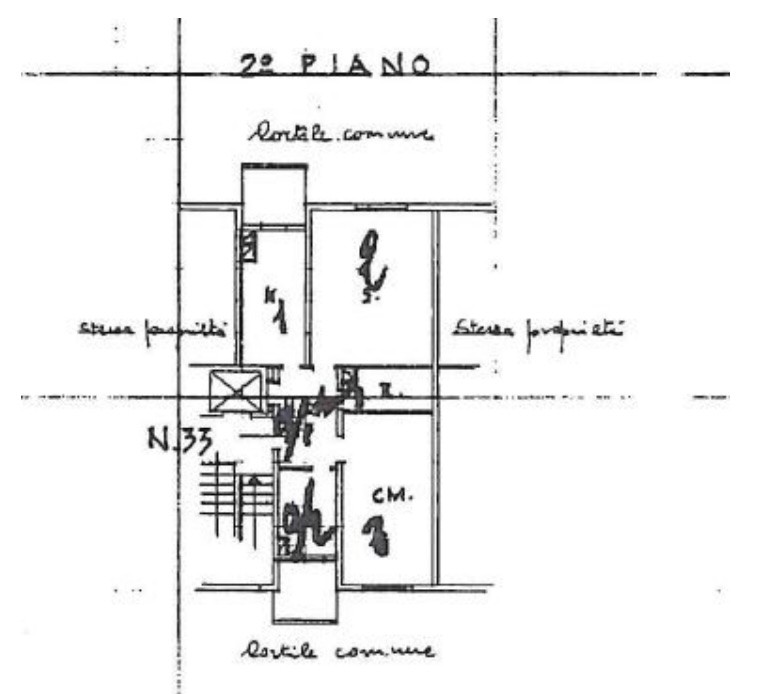 APPARTAMENTO mq 72,72 al piano secondo con annessa cantina al piano seminterrato.