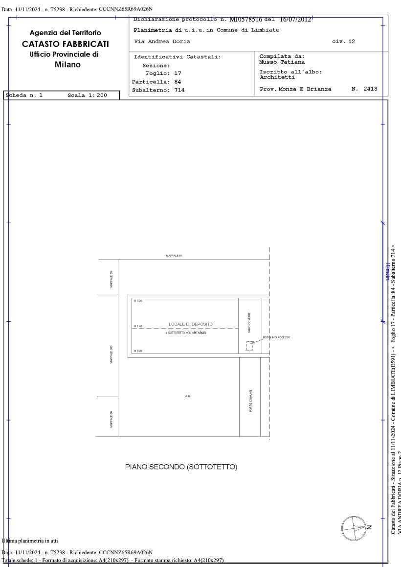 appartamento posto al piano secondo, composto da due locali e servizi, con deposito al piano sottotetto.