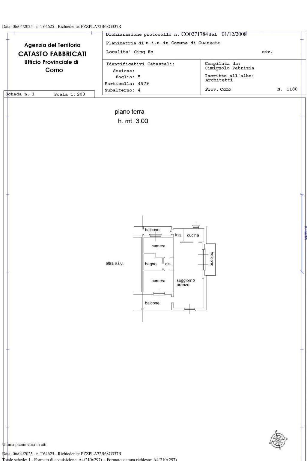Nel complesso residenziale Condominio Cinq Fo. Appartamento al piano terra (di mq. 80) composto da ingresso, soggiorno/sala da pranzo, cucina, disimpegno, due camere e bagno, oltre portico e 2 balconi. Autorimessa al piano seminterrato (di mq. 22) composta da un unico vano utile con altezza interna variabile. ------------------------------------------------------------------------------------------------------------------------------------------------------------