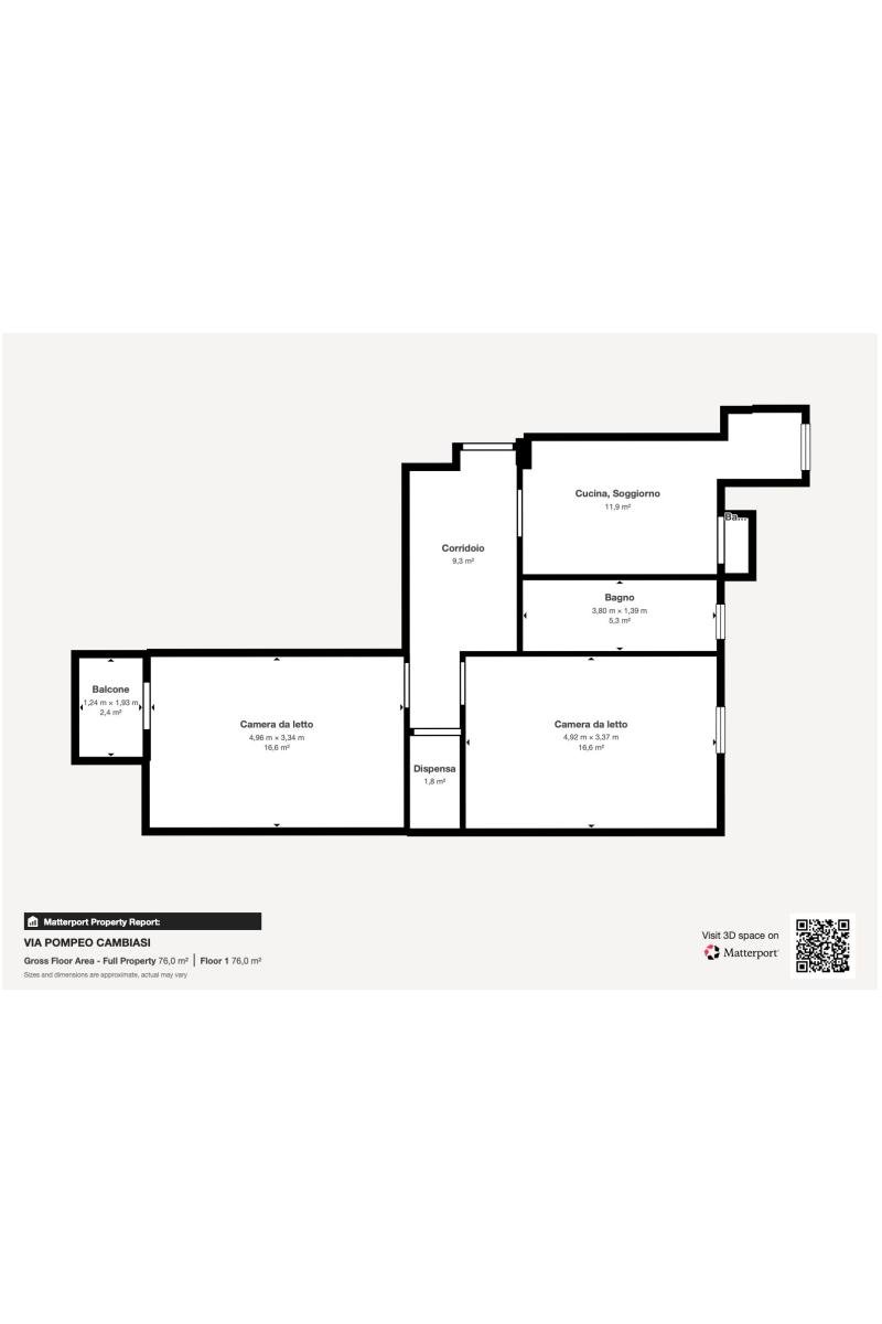 La casa è un Trilocale di 5,5 vani e 76 m calpestabili (escluse aree scoperte), con una rendita catastale contenuta (Euro 639,12).