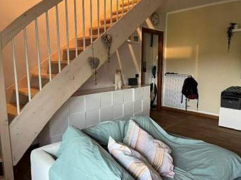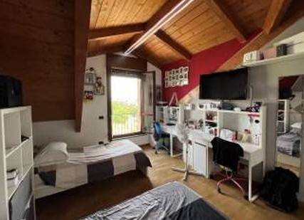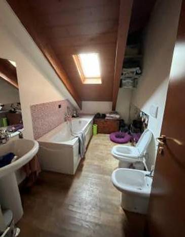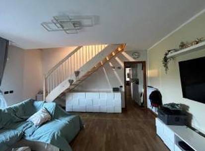 Piena proprietà di appartamento ad uso abitazione posto al piano 2-3 composto da ingresso/soggiorno, bagno, disimpegno, cucina, scala di collegamento al piano terzo con destinazione soffitta, ; distribuito, vano letto, bagno ed altro vano letto, oltre box al piano T.