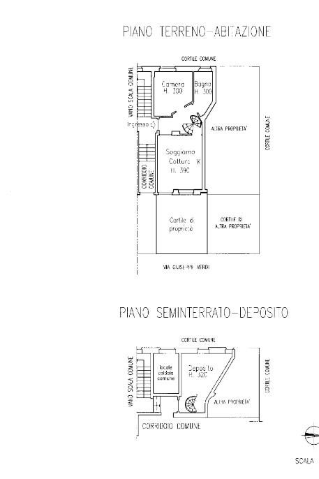 unita' abitativa ai piani T/S1 composto da due locali con relativi servizi con locale deposito, forometria per scala interna e annesso cortile pernenziale