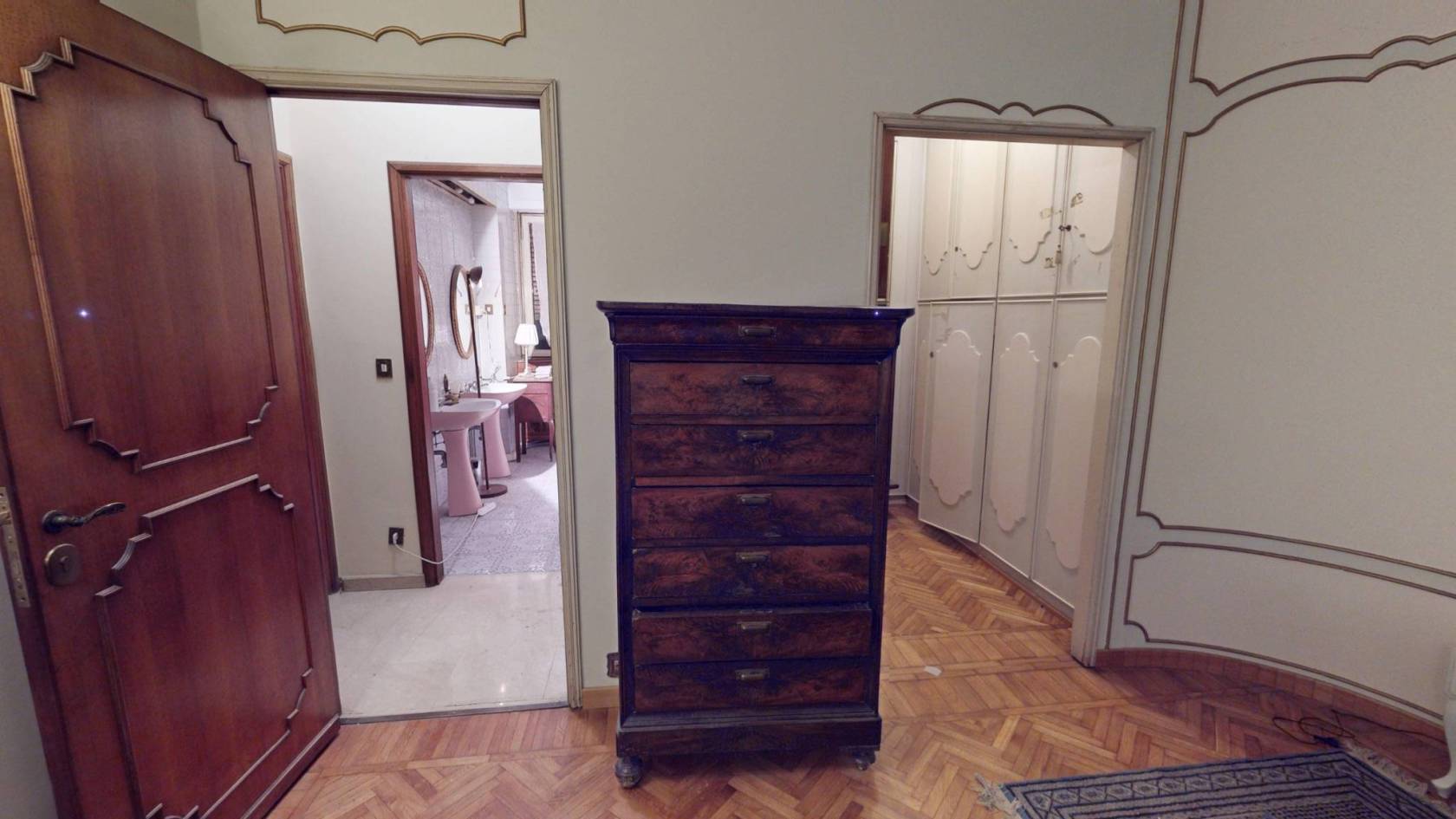 Dettagli d'Autore: Sto risplendendo grazie al restauro dei miei soffitti con stucchi decorativi e delle eleganti cornici alle pareti che incorniciano i volumi generosi delle stanze.