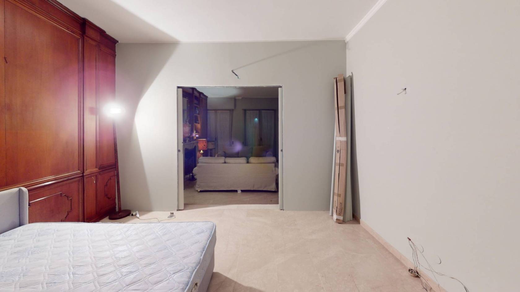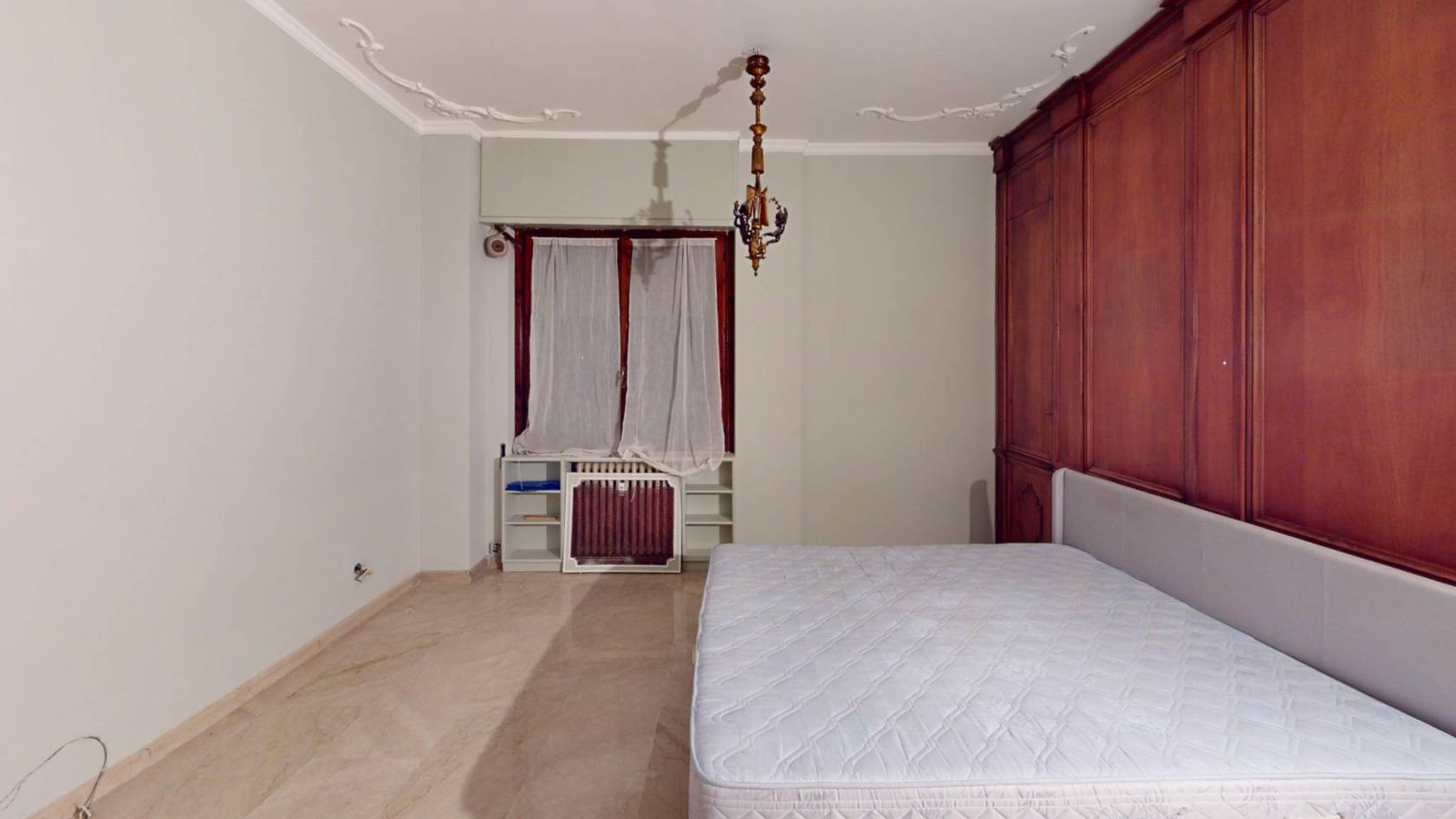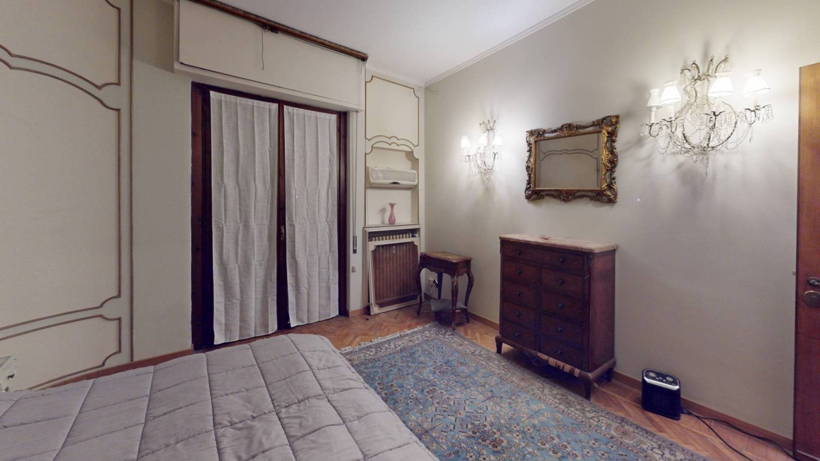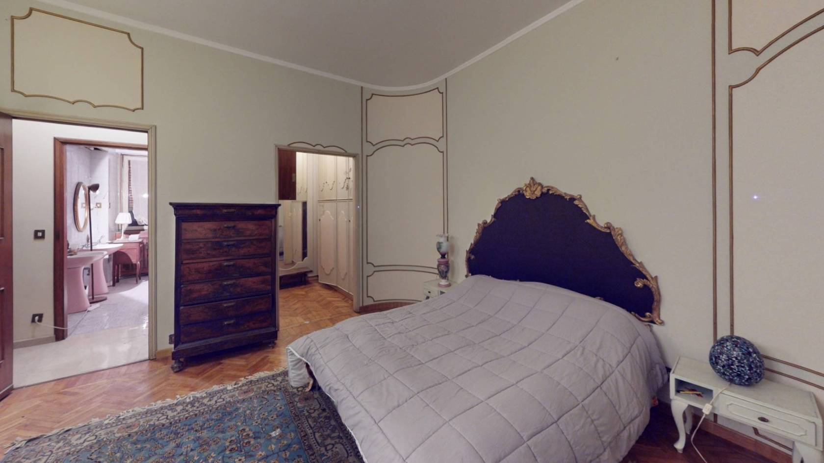 La camera padronale, con i suoi decori classici e la climatizzazione già predisposta, è pronta a diventare il vostro rifugio più intimo.