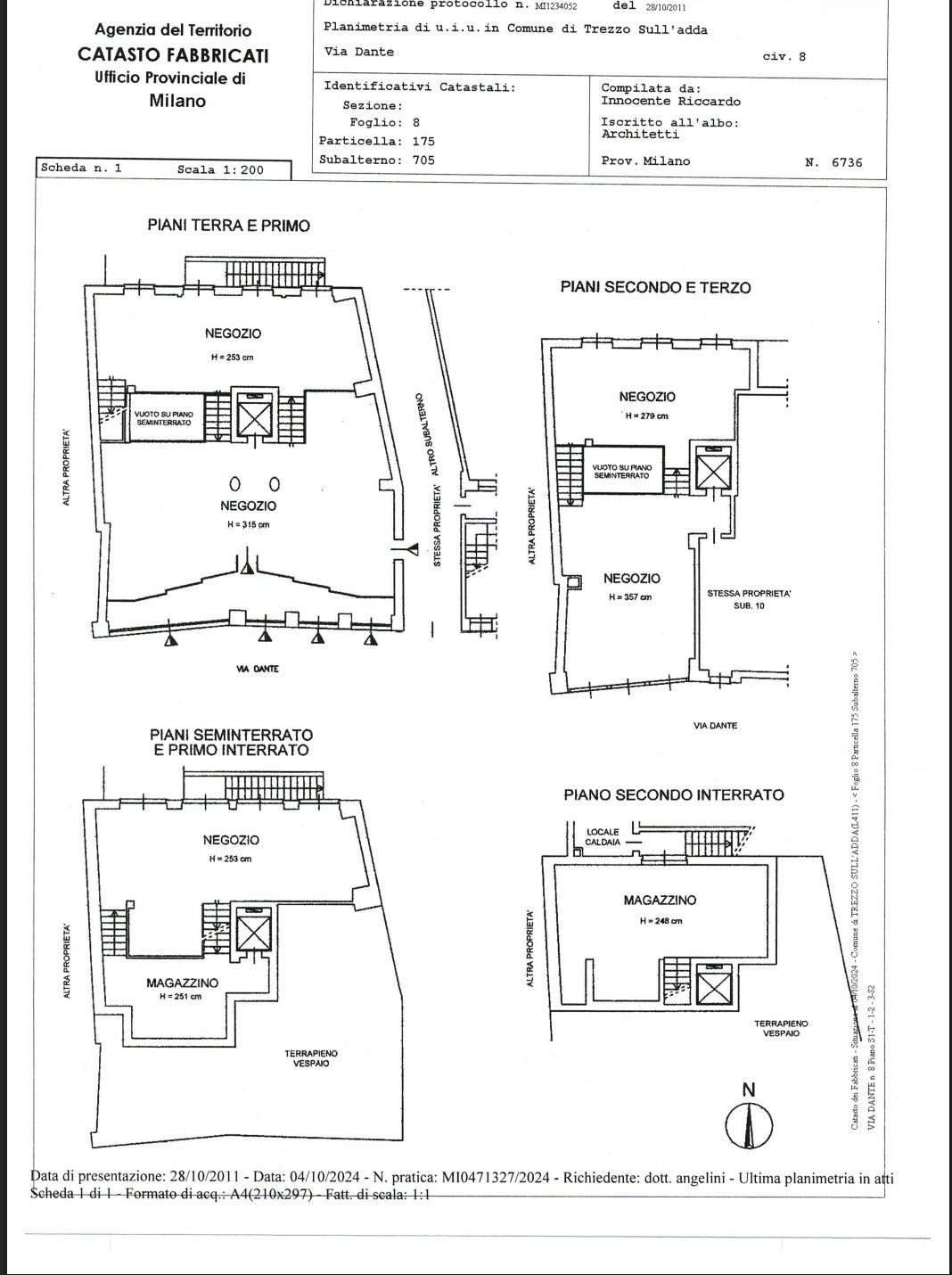 In Comune di Trezzo sull'Adda (MI), piena proprietà della seguente unità immobiliare, via Dante Alighieri n.ri 4/6/8 intero fabbricato ad uso commerciale e residenziale, composto da tre piani fuori terra e due entro terra, suddivisi in livelli sfalsati, con destinazione ad d'uso mista (residenziale e commerciale) oltre ampia corte interna con vano autorimessa e piccolo deposito, -----